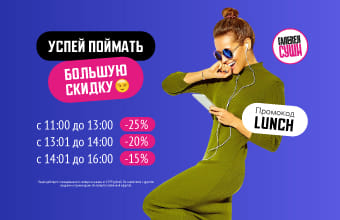 Скидка до 25% по будням с 11:00 до 16:00 по промокоду: LUNCH